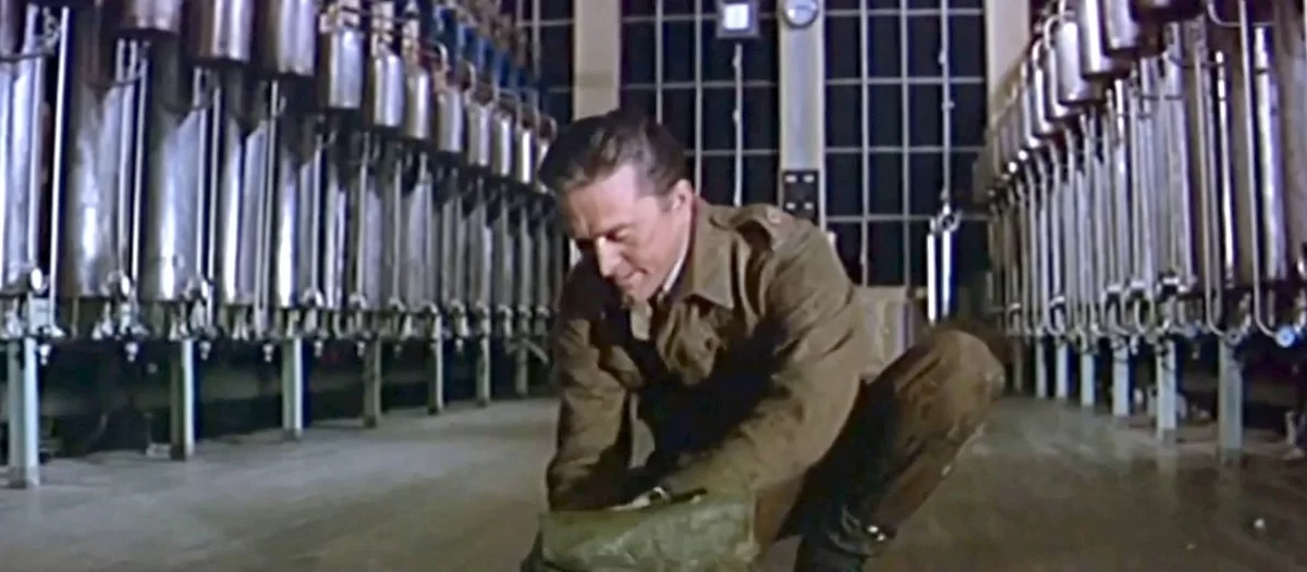 Персонаж актёра Кирка Дугласа в фильме «Герои Телемарка» устанавливает взрывчатку на заводе тяжелой воды