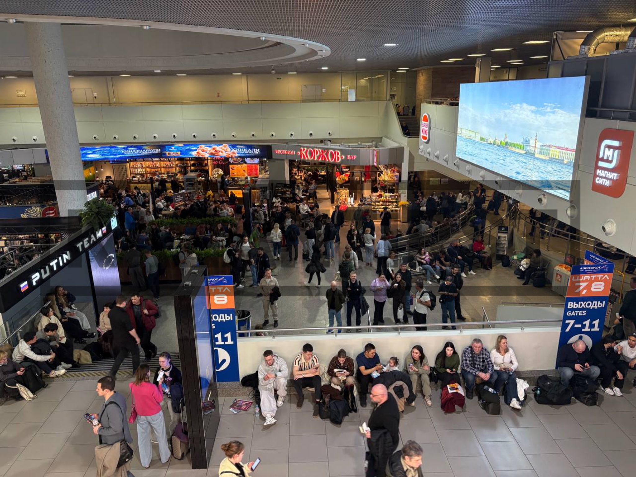 На данный момент в аэропорту «Пулково» свой вылет ожидает тысячи пассажиров, свободных мест нет, люди спят на полу. Представители авиакомпании выдали людям пенки, чтобы можно было лечь в зале ожидания. Однако, их хватило не всем.
