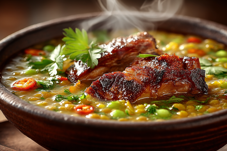 Этот рецепт — доказательство того, что по-настоящему роскошный и сытный суп можно приготовить из самых доступных продуктов. Горох, чечевица, пара овощей и немного копченостей волшебным образом превращаются в наваристое первое блюдо.