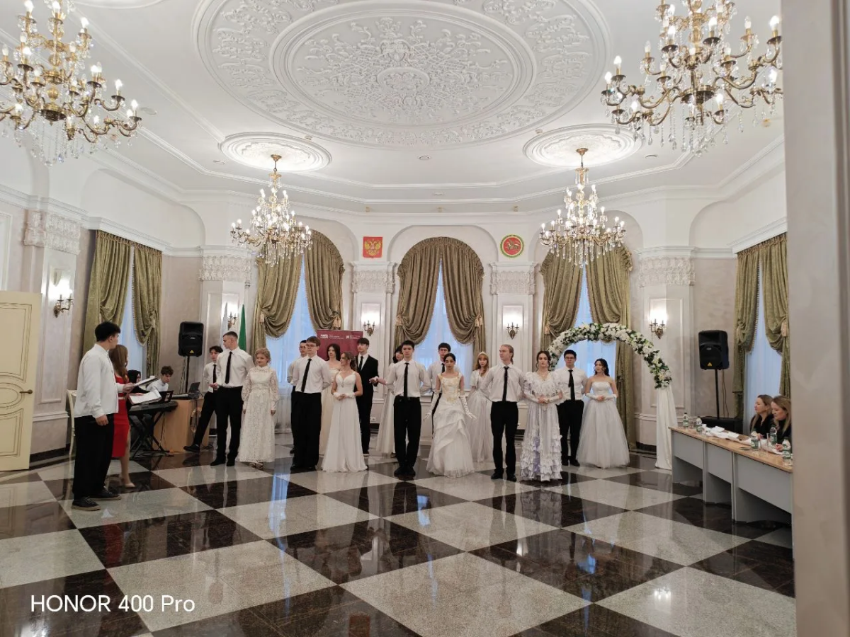 Лига студентов Татарстана провела студенческий бал в отделе ЗАГС города Лениногорска. Об этом сообщает пресс-служба Управления ЗАГС Кабмина РТ.