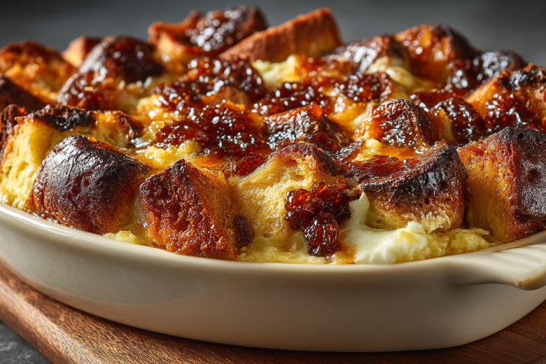 Сложно поверить, что из подсохшего пасхального кулича можно создать столь изысканный десерт. Черствая выпечка, пропитанная ванильным заварным кремом и дополненная шоколадом, преображается в нежнейший тёплый пудинг с хрустящей карамельной верхушкой.